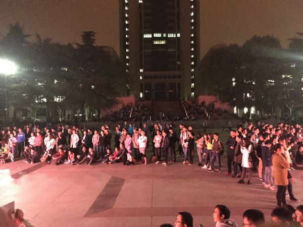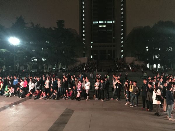 晚间,网络中心全程直播了在思源活动中心举办的“为世界之光——饮水思源之夜”大型校园文艺晚会,并在四大发明广场的电子大屏实时转播。由于场地容量限制,近千名无法进入思源场馆的师生及校友来到了四大发明广场观看了晚会转播。