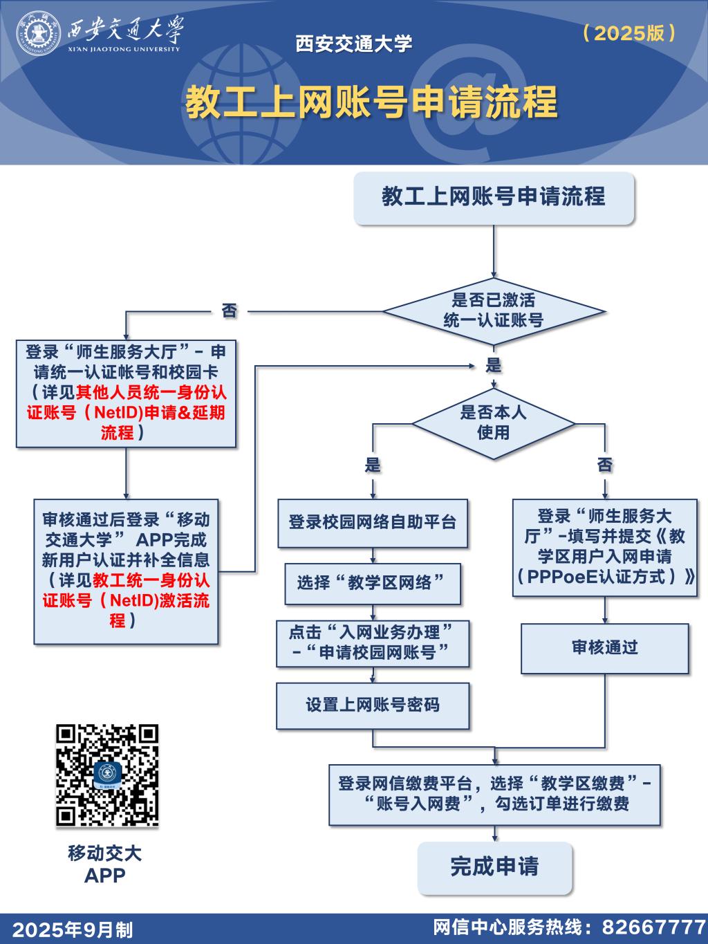 其他人员统一身份认证账号(NetID)申请&延期流程:http://nic.xjtu.edu.cn/info/1047/7824.htm
